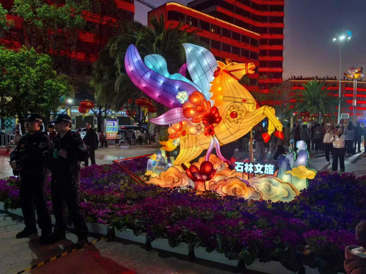结合景区、县城、乡镇文旅特色,推出“马上有福·石林年味满城之旅”“金马启岁·非遗迎新春之旅”“石在奇妙·亲子趣玩躺平之旅”“旅居石林·新春慢享时光之旅”“夜遇石林·龙马光影之旅”5条主题旅游线路,石林风景区成功入选昆明春节假期热门景区前5名。
