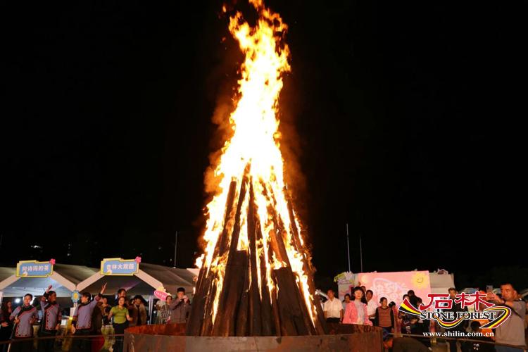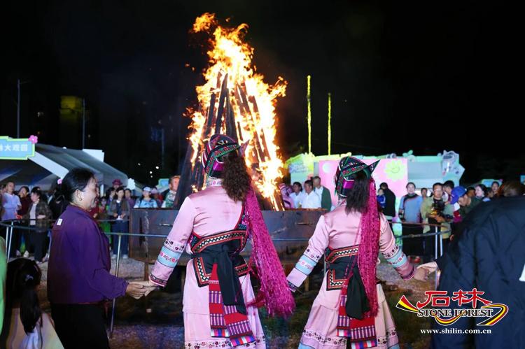 晚会尾声,篝火点燃,演员与观众手拉手围火打跳,欢声笑语交织,共同表达对石林与生活的热爱。